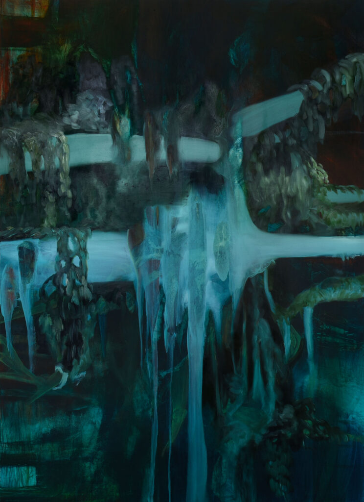 Tatzenkralle, 2024, Acryl, Öl und Ölpastel auf Leinwand, 110×140 cm